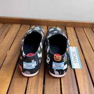 NWT TOMS Halloween Pumpkins Black Cats Skulls Slip On Shoes Black Size 6