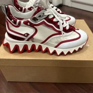 New Christian Louboutin Red and White Sneakers