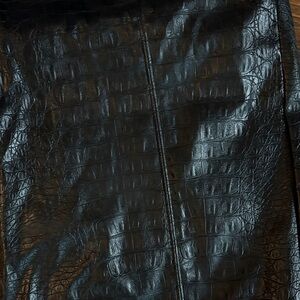 Chic black pencil skirt with a textured finish. Perfect for a stylish look.