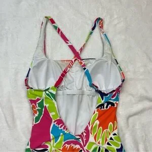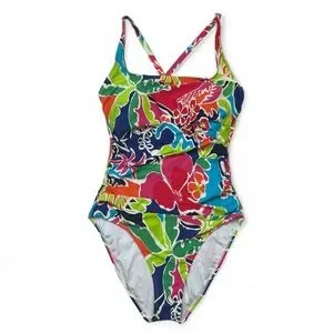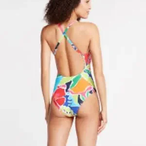 NAUTICA Tropical Open Back Criss Cross Vibrant One Piece Bathing Suit