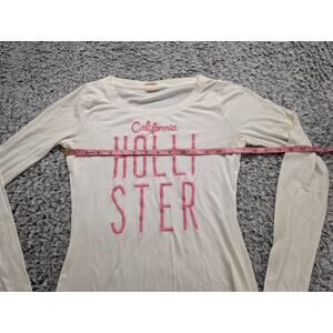Hollister Shirt Women Small White Embroidered Casual Summer Minimalist Normcore