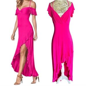VENUS Sexy Stretch Hot Pink High-Low Summer Vacation Ruffle Dress Size Medium