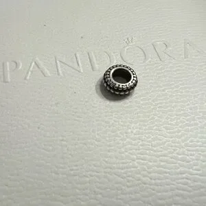 Stylish charm with detailed beading. Ideal for any bracelet. Used - very minor wear, cleaned with tarnish remover.