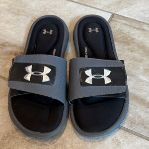 Under Armour Men’s Gray and Black Slide Sandals, Size 12