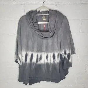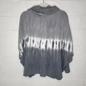 XCVI Wearables Women's Small Shirt Top Poncho Cowl Neck Gray White Tie Dye