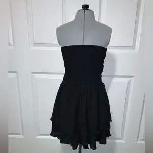 (Bin 14) Cider, Black Short Ruffled Strapless Dress, Size L