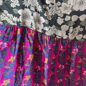 Charming dress by NATURAL LIFE. Features a black and white floral top. Vibrant pink patterned skirt. Perfect for summer days.