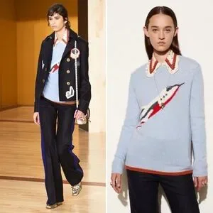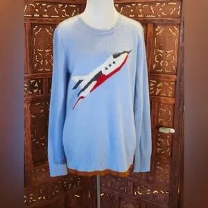 New without tags Coach 1941 Powder Blue Intarsia Sweater size medium. Jet plane design on front of sweater. 100% Cashmere. Seen on runway. Rare and hard to find. Label has been cut by Coach. See photos for details.
