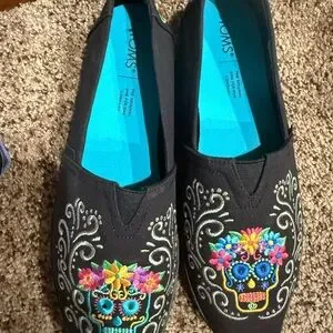 Pair of two brand new Toms slip one “dia de los muertos “ or “day of the dead” theme
