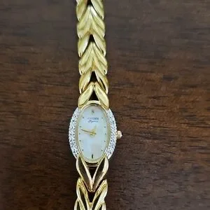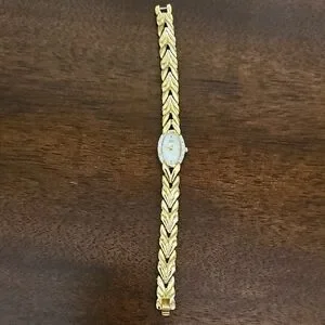 Elegant gold bracelet with a sleek watch face. Perfect for any occasion.