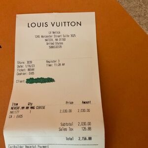 @mschmidt04 So unfortunately Poshmark did not send me the receipt when I initially purchased it, but it will come with the Louis Vuitton box and the Louis Vuitton dustbag pictured. And yes, I have a smoke free home!