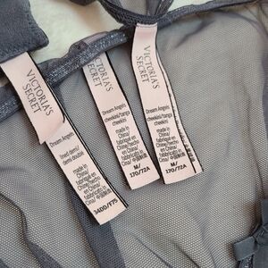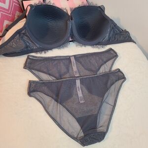 VS Dream Angels 3pc Bra & Panties Set Size 34E/med ☆ Gray Sparkle Lace