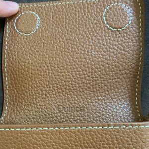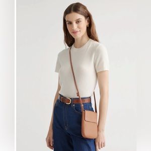 Elegant brown leather crossbody bag. Sleek design. Perfect for everyday use.