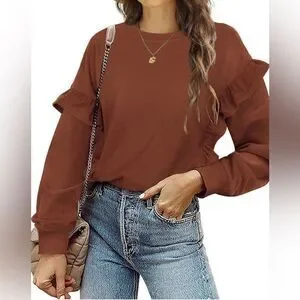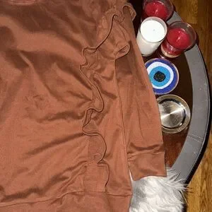 Long Sleeve Brown Sweater with ruffles. Size small.