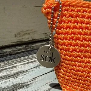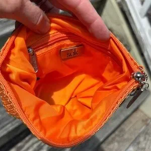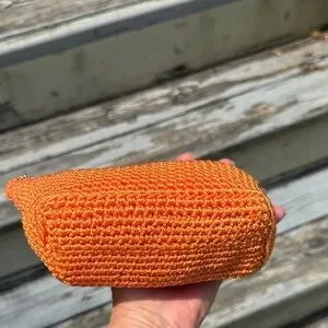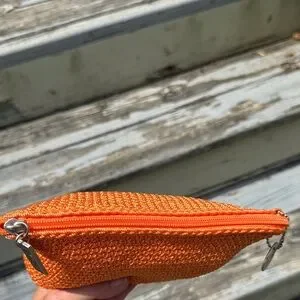 The Sak Bright Orange woven crochet Clutch case cosmetic makeup bag boho purse