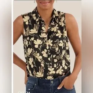 Chic sleeveless blouse with black floral design. Perfect for versatile styling. Stunning paired with the Set Up pants ( also available in my closet!)