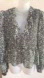 Elegant blouse with floral pattern. Features ruffled neckline and long sleeves. Perfect for any occasion.