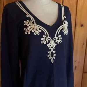 Lilly Pulitzer Navy Blue Dress with Cream Embroidery
