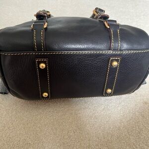 Dooney and Bourke Florentine Satchel. This is the micro size in the color Navy (very dark blue, almost looks black). Two interior slip pockets and one zip pocket. Has key leash. View all photos carefully as they are part of the description. Does NOT include a Dooney dust bag.