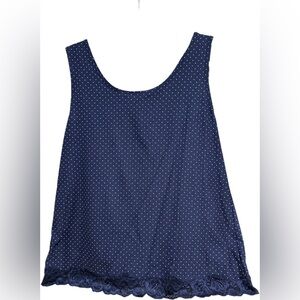 Chico’s Lace Trim Navy Blue Polka Dot Microfiber Tank