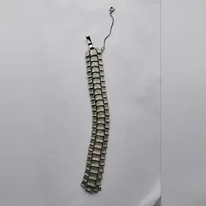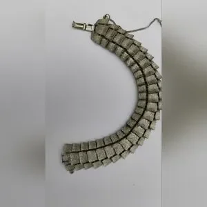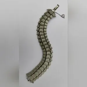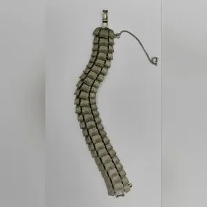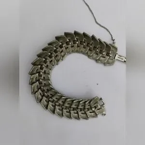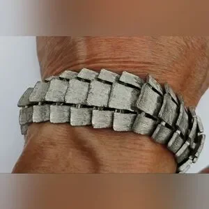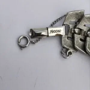 Art Deco Puccini Metal Crocodile Style Bracelet Wide Signed Silver Toned