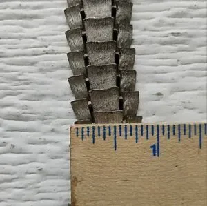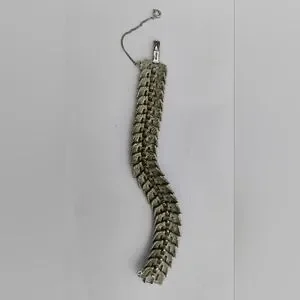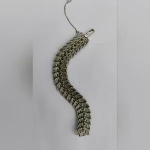 Metal alloy, and the different wide links move in different directions. Quite an interesting piece here!