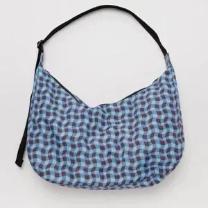 Baggu Blue and Brown Wavy gingham Patterned large crescent