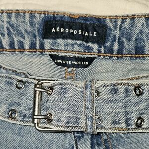 Casual light blue denim pants. Ideal for everyday style with its eyelet studded jean belt . super soft and comfortable low rise wide leg.