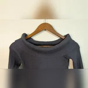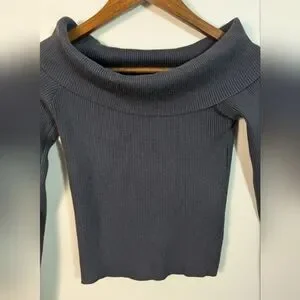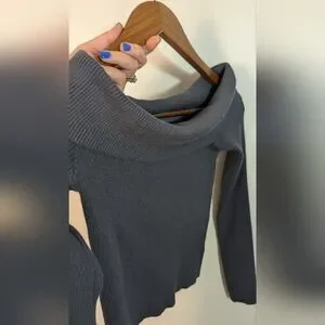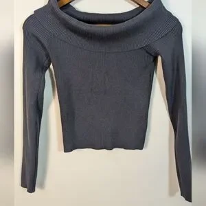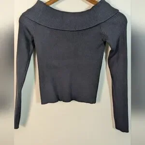 Edikted Dark Gray Ribbed Knit Off The Shoulder Crop Pullover Sweater