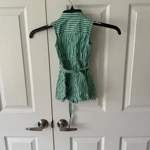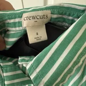 This is a great J.Crew Crewcuts girls's striped tie-waist shirtdress. This is a size 2 dress and is in exceptional condition. This is a green and white striped pattern dress.