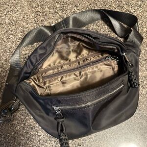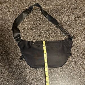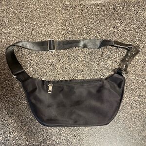 Brand new! Never been used! Tags not attached. Multiple zipper compartments, adjustable shoulder strap with chain derail on strap! This sleek black belt bag is perfect for keeping your essentials close and secure. Ideal for everyday use with a modern design.
