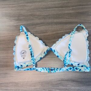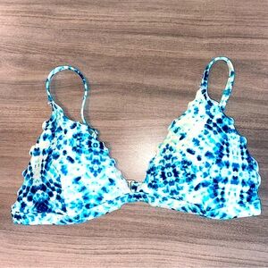 Eye-catching bikini top with a unique blue pattern. Perfect for beach days.