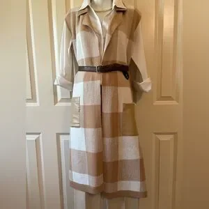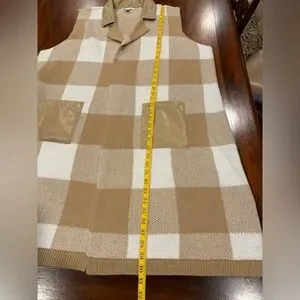 NWOT Tan and Cream Checkered Women's sweater long length vest. Size 24W