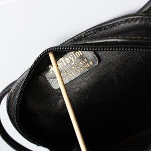 Preowned, vintage Ann Taylor black leather bag, most likely made in the early 80s. Made from smooth black box calfskin leather, it features a simple zipper fastener and a leather rope style strap. The interior is unlined.