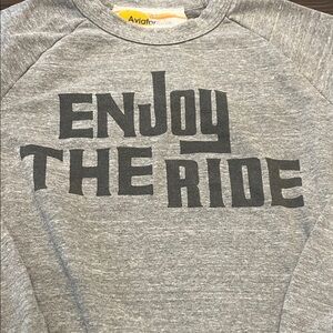 Classic gray crewneck with bold 'Enjoy The Ride' print. Soft and comfortable. Perfect for casual wear.