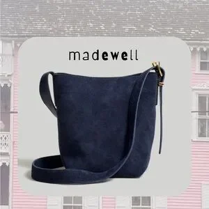 Madewell’s best-selling mini bucket bag! suede & leather, dark navy/black, cross body adjustable strap for a cool, modern, & quietly luxe look. with a magnetic closure & interior pocket, the mini bucket tote is perfectly sized to hold all your essentials!