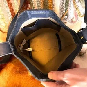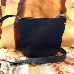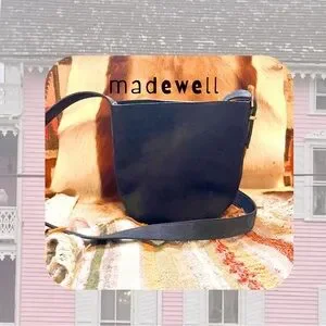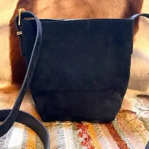 🆕 Madewell dark navy black suede & leather mini tote bucket crossbody bag