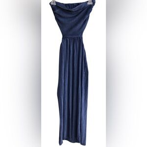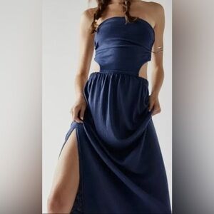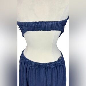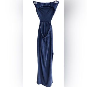 FREE PEOPLE Size Small Tangelica Maxi Vintage Strapless Cut out Solid Blue Slit