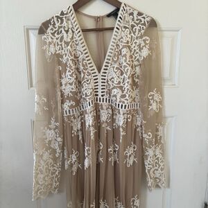 Embroidered Babydoll Maxi Dress Fairy Romantic Sheer Size Large Boho Mesh Lace