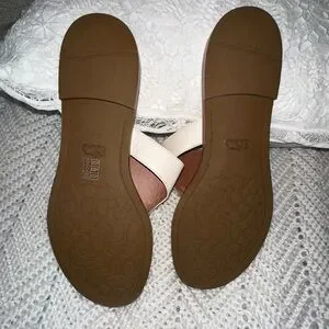 Stylish Coach sandals with a tan and cream design. Perfect for casual outings.