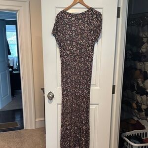Pretty gray maxi dress with floral pattern. Cool fabric and has a zipper in the back. Only worn once or twice and always washed on delicate and hung to dry.