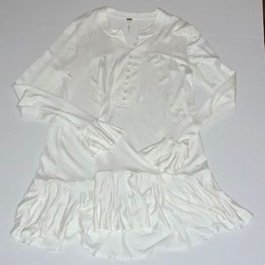 NWOT Free People White Boho Tunic / Mini Dress | Long Bell Sleeves | Size S