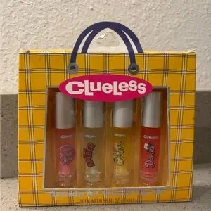Set of four Clueless-themed lip glosses. Vibrant colors in a stylish package.