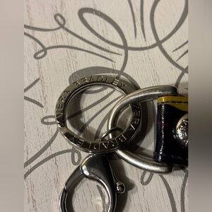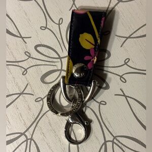 Vera Bradley key holder with bag clip. Features secure clasp and signature branding.