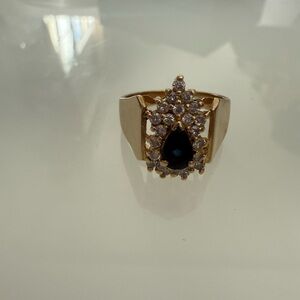 14k yellow gold pear cut sapphire diamond ring. All stones are natural not labgrown or synthetic. Vintage piece