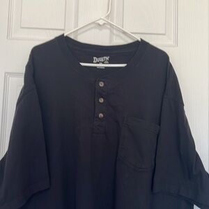 Like new men’s relaxed fit,long tail, short sleeve,3 button, black polo shirt, slits at side hem, 100% cotton, no snags,stains,fading or holes EUC. from smoke& pet free home.31”W x 33”L