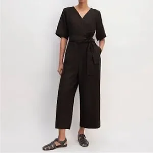 NEW Everlane The Linen Cross Front Jumpsuit Black 6