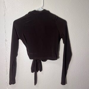 Stylish chocolate crop top with a tie front. Long sleeves for a sleek look. Perfect for casual outings or parties!! Really stretchy and gives confident and stylish look.