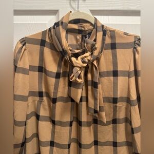 Vintage gold and black silk blouse from New York Co. with bow at neck Sz M. Material: 100% Polyester