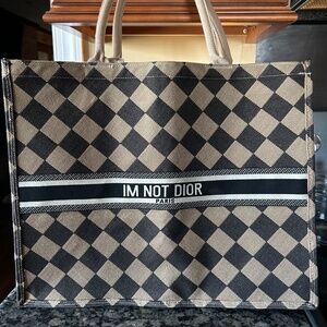 I’m Not Dior Paris Jute Tote Bag/Beach Bag/Shopping Bag. Brown/Cream